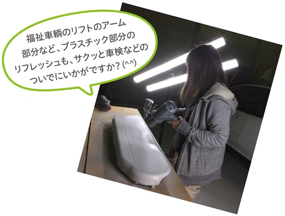 車イスを何度も出し入れして傷ついてしまったプラスチックパーツや床の補修もしております。