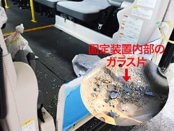 「バックの際にリヤガラスが割れてしまった」・・・リフトや固定装置にガラス片が入ってしまうと、車イスの固定力不足につながる等、大変危険です。福祉車輌を熟知しているBICが、リフトや固定装置の中までしっかり分解・点検します。